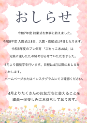 (お電話の場合平日9時~16時。幼稚園休園時は翌登園日のご連絡になります)